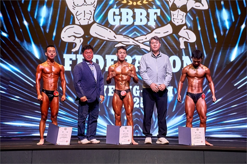 남자고등부 시부(市部) 밴텀급(75kg) 시상식. 잘 단련된 수상자들의 멋진 근육질 몸매가 감탄을 자아내기에 충분하다. 정창현 기자
