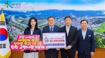 가야의 건국신화 유적지인 김해시 구지봉에서 진행된 제64회 경남도민체육대회(경남도민체전) 성화 채화식(採火式). 차석호 진주부시장(오른쪽)이 안경원 김해부시장(다례식 헌관)으로부터 채화된 성화를 인계 받은 뒤 기념사진을 찍고 있다. 진주시