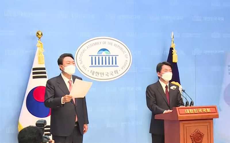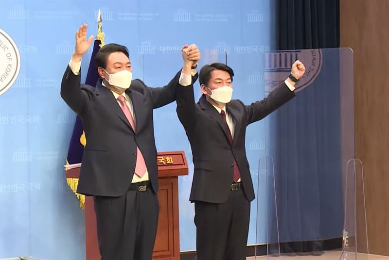 국민의힘 윤석열, 국민의당 안철수 대선 후보가 3일 후보 단일화를 전격 선언했다.