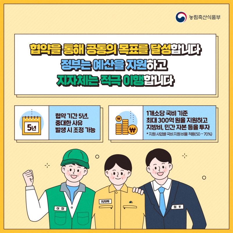 농촌협약에 선정돼 협약을 하면 오는 2023년부터 5년간 국비 최대 300억 원과 지방비가 투입돼 365생활권 조성, 주거공간 개선, 농촌공간 재생을 필수과제로 사업을 추진한다.