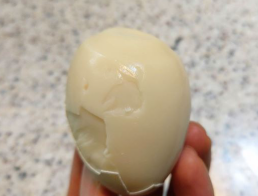 잘못 삶아 껍질이 제대로 벗겨지지 않은 계란. 계란의 흰자 부분이 떨어져 나갔다. 정창현 기자