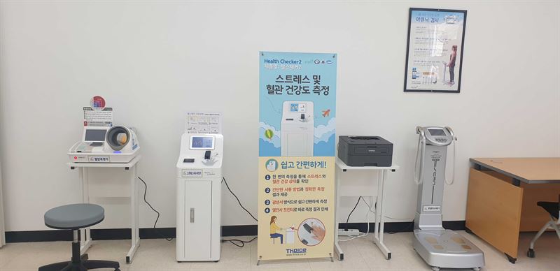 심신 건강을 위한 기구 11종 25대가 구비된 건강체험존과 상담실이 마련돼 혈압계, 스트레스지수 측정, 체질량지수 측정은 무료다. 전담 간호사가 검사 결과에 따른 향후 건강 관리 등을 안내한다.