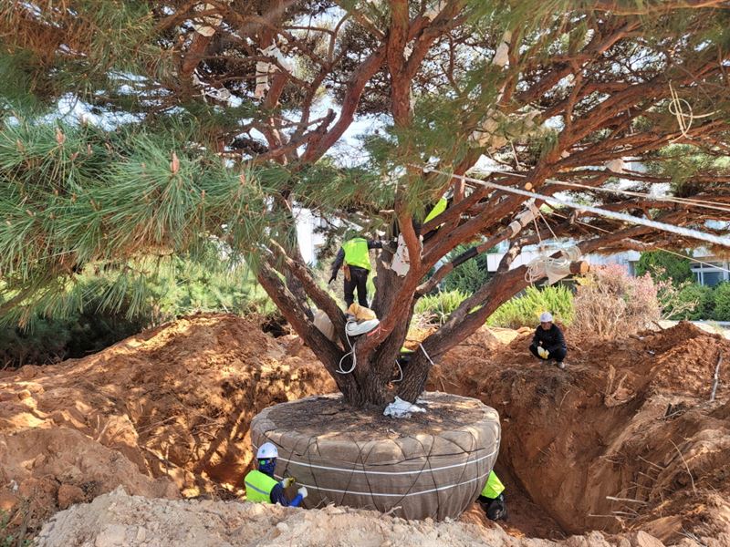 지난 4월 15일부터 17일까지 굴취, 분뜨기, 전지 작업 등을 했고 18일 새벽 저상트레일러를 이용해 영흥공원으로 운반했습니다.