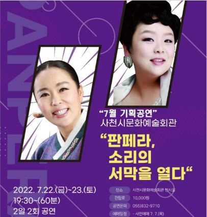 경남 사천문화재단은 오는 22~23일 사천시문화예술회관 전시실에서 판소리와 오페라의 콜라보 '판페라, 소리의 서막을 열다' 공연을 선보인다.