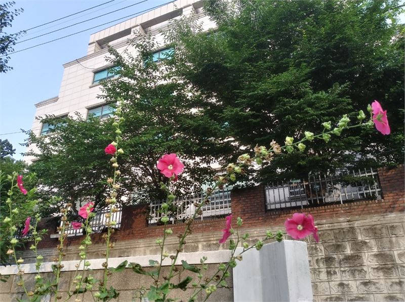 접시꽃은 화단뿐 아니라 마을 어귀, 길가, 담장 등지에서도 자주 보는 꽃입니다.