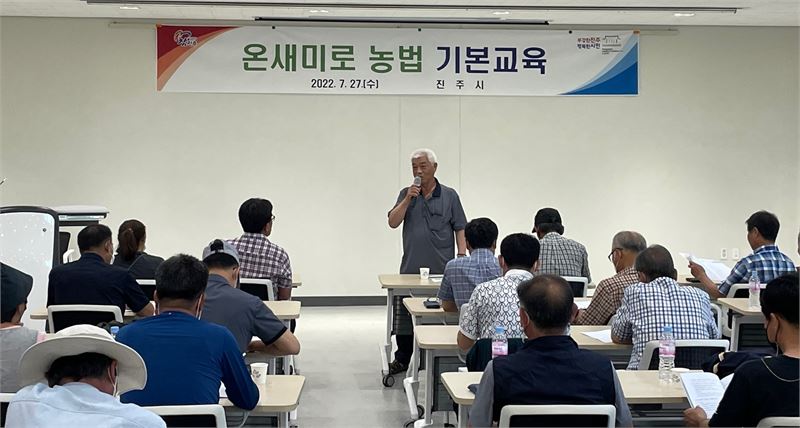 경남 진주시는 친환경농업 활성화와 농가소득 증대를 위해 지난달 22일과 27일 친환경 생태농업과 온새미로 농법 교육을 했다.