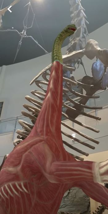 특히 중앙홀에 전시된 거대 용각류인 클라멜리사우루스의 골격과 1층 프로토케라톱스, 암모나이트 등의 전시물은 QR코드를 이용해 살아있을 때의 모습으로 볼 수 있는 증강현실 서비스가 제공되고 있어 관람객들에게 큰 인기를 끌고 있다.