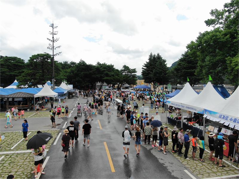 축제 행사장 전경. 가운데가 '천년의 숲' 송림이다.