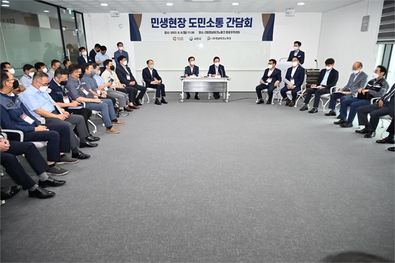 박완수 경남도지사는 지난 8일 사천 경남테크노파크 항공우주센터에서 도민과 기업 대표 등이 참석한 가운데 민생 현장 소통간담회를 가졌다.