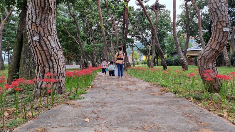 신포숲 내 산책로를 걸으면 소나무 향기와 더불어 꽃무릇을 향기를 듬뿍 느낄 수 있어 최적의 힐링의 최적지로 알려지며 나들이객의 발길을 붙잡고 있다.