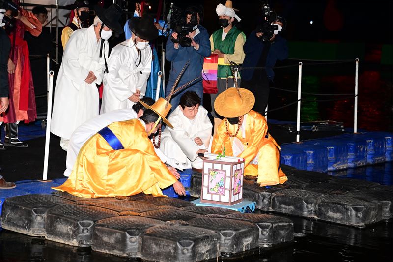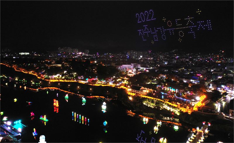 다음은 10일 밤에 열린 남강유등축제 개막식의 주요 장면들이다.