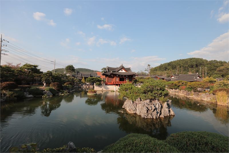 관정 이종환 삼영화학그룹 명예회장의 생가와 연못 정경. 전체 분위기가 단아하다.
