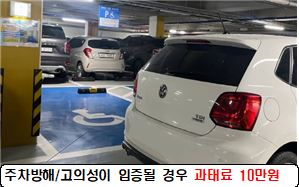 위반 시 불법주차는 10만원, 주차방해는 50만원, 주차표지 불법 사용은 200만원의 과태료가 각각 부과된다.