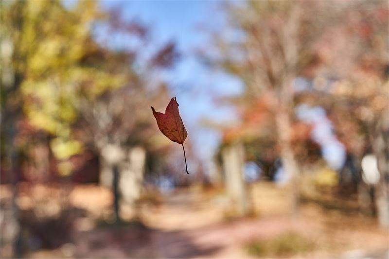 낙하하는 낙엽 한 잎을 순간 포착했다.