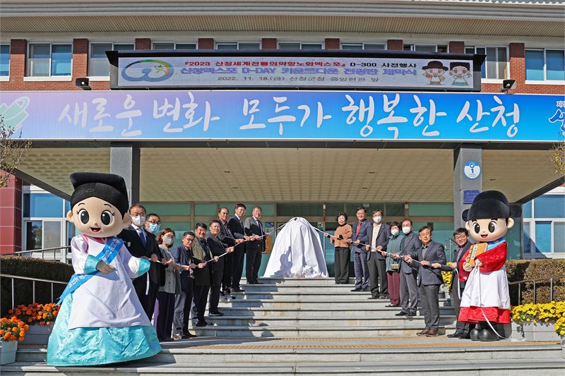 (재)산청세계전통의약항노화엑스포 조직위원회(공동조직위원장 박완수 경남도지사․이승화 산청군수)는 ‘2023산청세계전통의약항노화엑스포’ 개막을 300여일 앞두고, 사전 붐 조성과 성공 기원을 위해 ‘엑스포 D-day 카운트다운 전광판 제막식’을 18일 산청군청 현관 앞에서 가졌다.