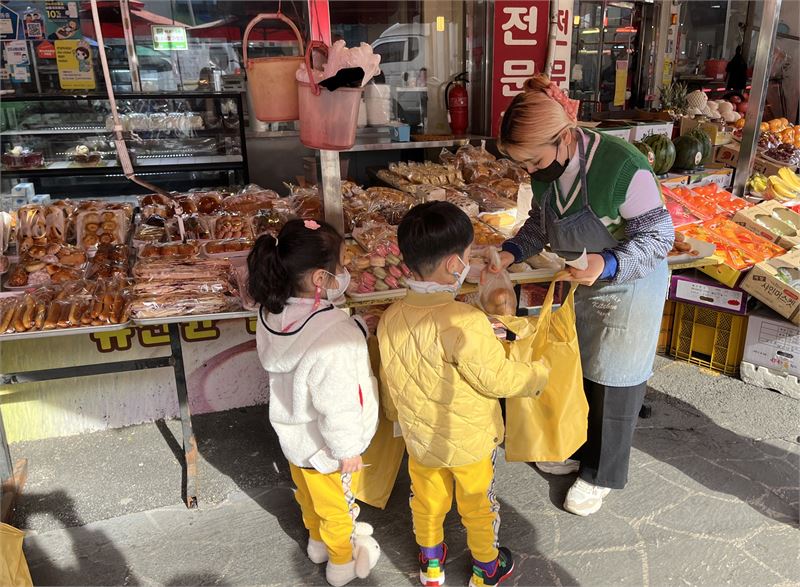 이번 행사는 마트나 백화점에 익숙한 아이들이 전통시장 매대에 진열된 먹거리와 물건들을 구경하고 온누리상품권과 장바구니를 이용해 과일, 빵 등 간식거리를 사면서 경제활동을 체험해 전통시장만의 색다른 재미를 느낄 수 있게 했다.