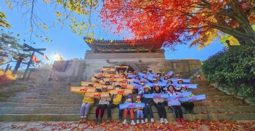 청년 & 직장인 갈맷길 원정대가 성문 앞에서 단체 기념사진을 찍고 있다.
