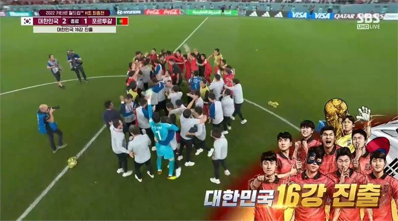 한국 축구 대표팀이 유럽의 강호 포르투갈을 잡고 극적으로 카타르 월드컵 16강에 진출했다. 한국 대표팀은 승리하고서도 상대팀들의 결과를 8분이나 무려 초조하게 기다렸다.