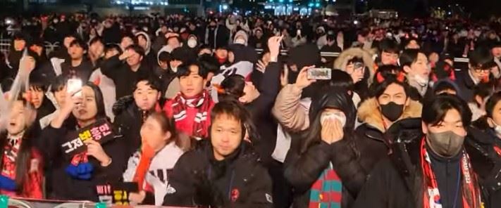 경기가 4대 1로 끌려가자 광화문광장 응원 시민들이 안타까워 하는 모습