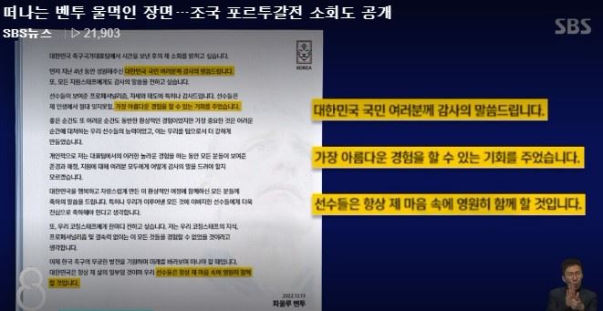 벤투 감독은 대한축구협회 SNS에 장문의 작별 인사를 남겼다.