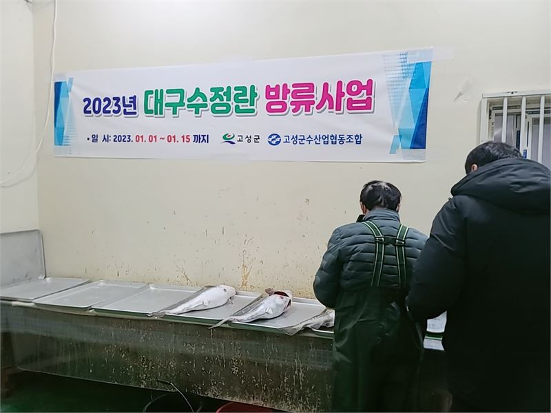 고성군수협과 업무 위·수탁 계약을 마치고 경남도 수산안전기술원 고성지원과 어촌계 및 어업인들이 합동으로 동해면 우두포 해역에 대구 인공수정란 5억 알을 방류할 계획이다.