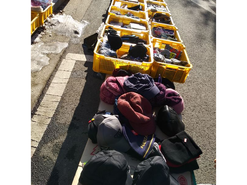 맹추위가 몰아치던 어느 토요일 아파트 단지에 자리를 깔고 손님을 기다리는 털실 모자들의 정경을 소개합니다. 추운 겨울엔 두둑한 외투를 떠올리지만, 보기 힘든 모자들이 더 정겹게 다가서네요.