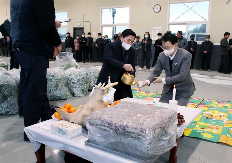 경매는 지난해와 같이 현장 경매방식으로 진행됐으며, 이날 경매가는 지난해보다 kg당 500원 높은 9400원에 2.8t 가량 거래됐다.