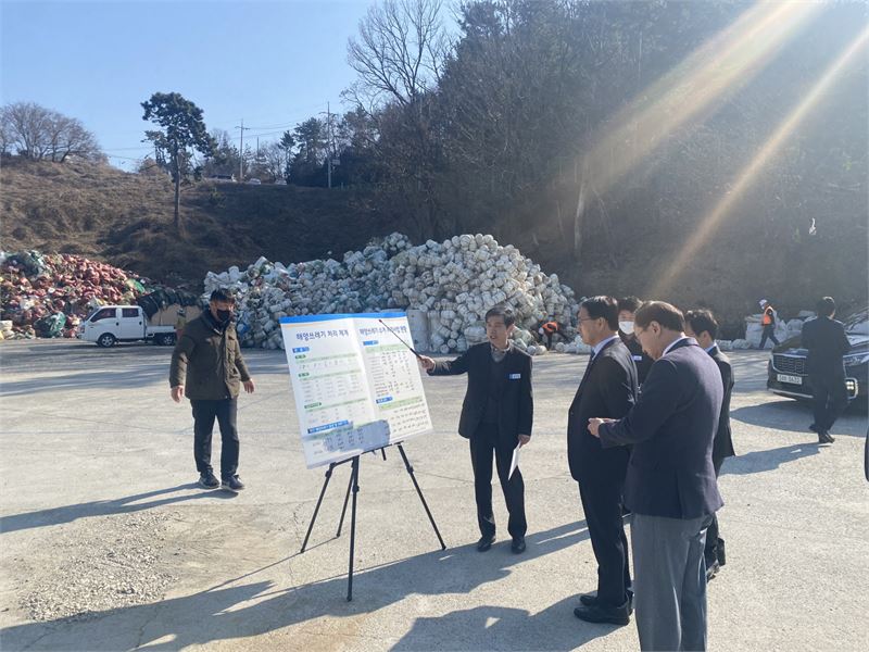 이어서 해양 쓰레기 문제와 플라스틱 사용 저감을 위해 운영 중인 어업용 폐스티로폼 감용장을 방문해 폐스티로폼 감용처리와 재활용품 생산 공정 과정을 견학하고, 근무자들의 의견을 청취했다.