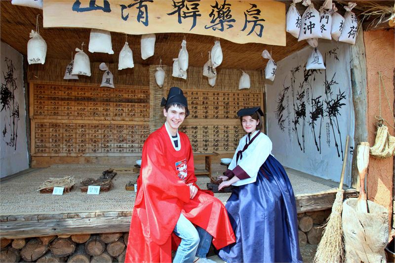 외국인 관광객이 포토존인 '산청한약국'에서 기념사진을 찍고 있다. 산청군 제공