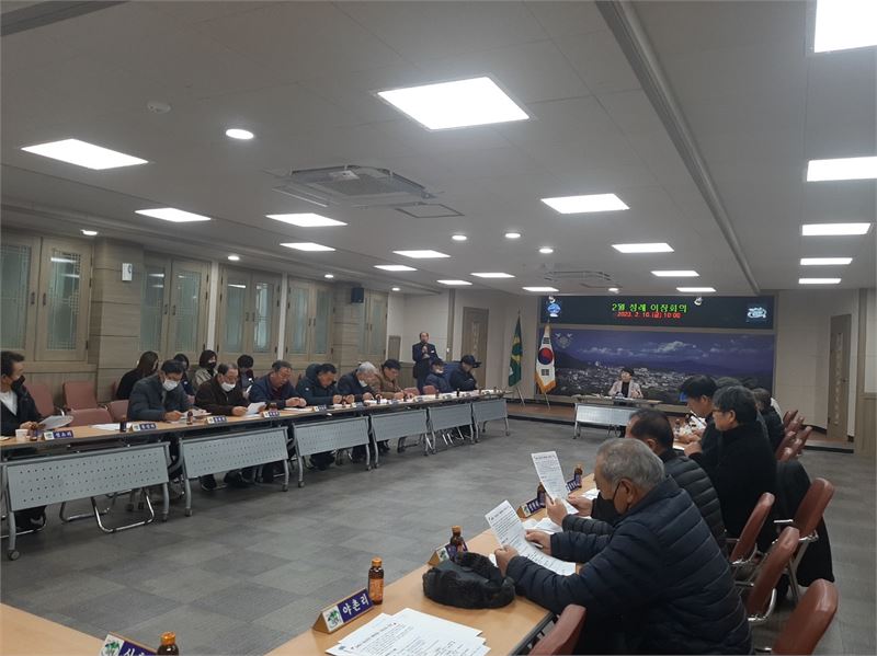 남해군이 2월 정례 이장회의에서 '대상포진 예방접종 지원사업'을 홍보하고 있다. 남해군 제공
