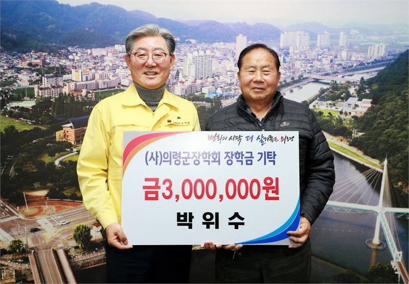박위수 씨가 지난달 의령군에 장학금 300만원을 기부 했다. 이상 의령군 제공