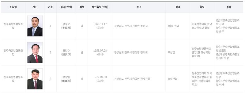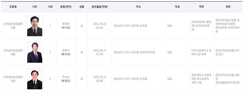 오는 3월 8일 실시되는 제3회 전국동시조합장선거 경남 진주시의 조합 후보자 명단이 나왔다.