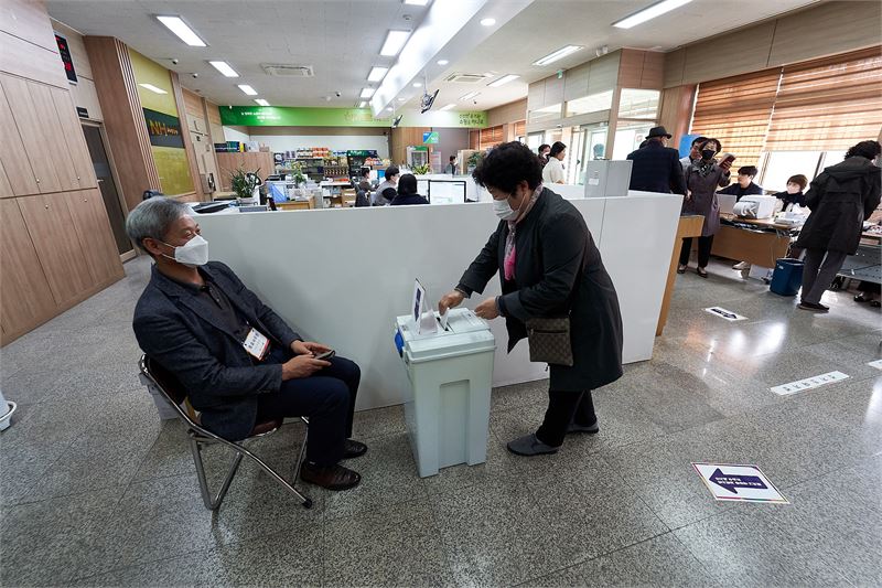 선거 관리 직원과 참관인은 대부분 평소 알고 지내는 사이여서 안부를 물으며 참 편하게 투표를 하는 모습이었습니다. 농어산촌의 조합장을 뽑는 선거여서 향토색 같은 풋풋한 분위기가 물씬 풍깁니다.