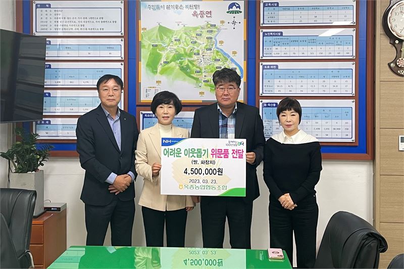 정현표 면장은 “나눔의 가치를 실천한 옥종농업협동조합에 진심으로 감사드리며 기탁한 물품은 조합의 뜻에 따라 어려운 이웃에 잘 전하겠다”고 말했다.