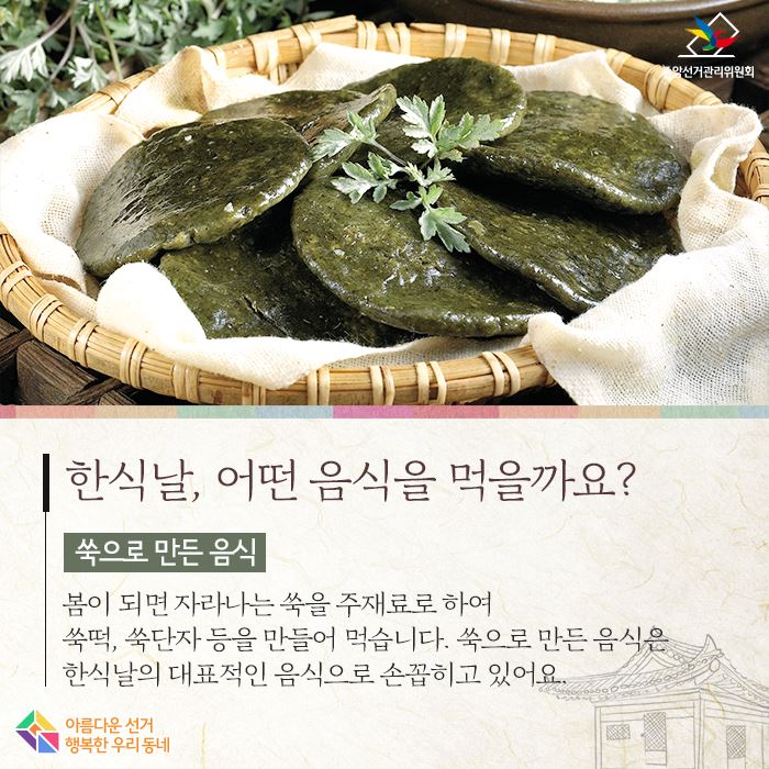 예전엔 한식을 설날, 단오, 추석과 함께 4대 명절로 쳤습니다. 지금도 세시풍속으로 전해져 제를 올리고 시절 음식을 해먹지요.