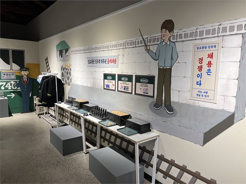 전시실은 ▲당시 역무원 적성검사와 매표를 체험할 수 있는 플랫폼 ▲기차 운행을 체험해 볼 수 있는 기관실 ▲통근과 통학의 추억이 서린 완행열차 비둘기호 ▲간식 손수레와 증강현실(AR) 체험을 즐길 수 있는 낭만열차 통일호 등 4개 공간으로 구성됐다.