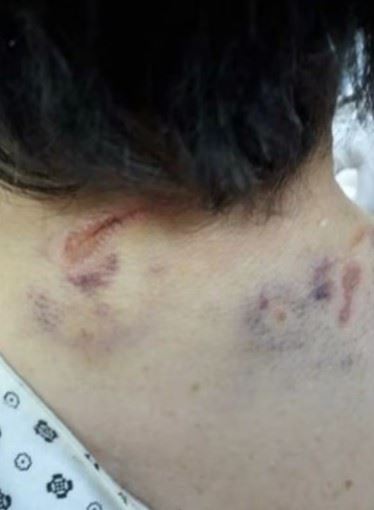 이 여성은 목과 배, 다리에 심한 부상을 입었다. 사진을 보면 개에 물린 이빨 자국이 선명하게 남아 있다. 개가 할퀸 것으로 보이는 상처와 멍도 다수 남아 있는 모습이다.