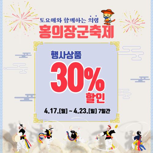 이번 특별 할인 이벤트는 ‘제48회 의령 홍의장군축제’를 맞이해 의령 특유의 의병의 기운을 가득 담은 농특산물을 엄선하여 대폭 할인된 가격으로 소비자들에게 찾아간다.