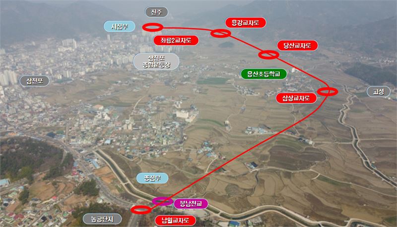 실시설계와 토지보상은 사천시가, 공사비는 GGP에서 각각 부담하며 총 616억원의 사업비를 투입한다. 오는 2025년 12월 완공된다.