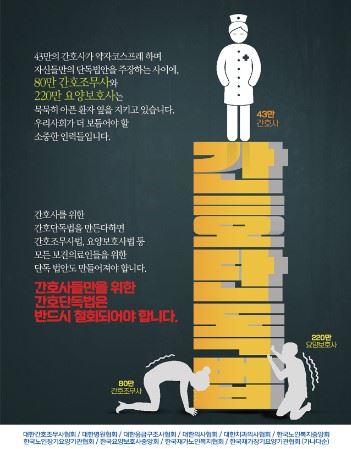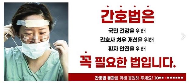 이 법은 간호사 직역을 의료법에서 떼내 법적 지위를 독자 보장하는 것을 골자로 한다. 간호사와 전문간호사, 간호조무사의 업무 범위를 정하고 간호사 처우 개선 등의 내용을 담고 있다. 의사와 간호조무사 등 다른 의료 직군은 형평성을 이유로 반대하고 있다.