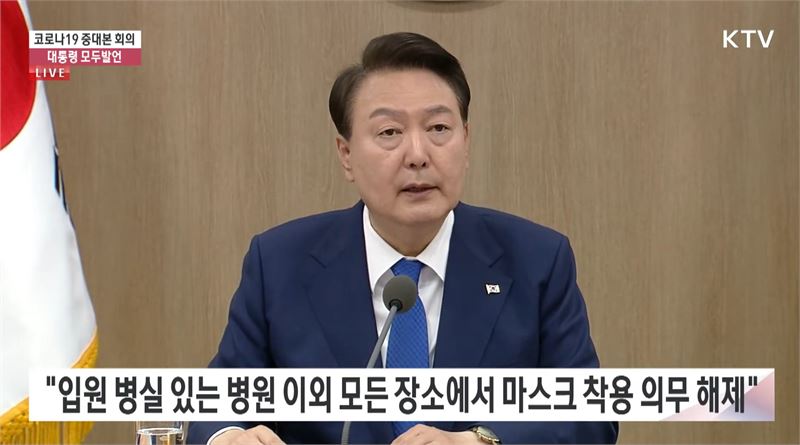 윤 대통령은 회의 주재 도중에 일어 서서 참석한 의사, 간호사, 간호조무사들을 향해 “모두 큰 박수를 부탁드린다”며 격려했다. 이어 “3년 4개월 만에 국민들께서 일상을 되찾게 돼 기쁘게 생각한다”고 말했다.