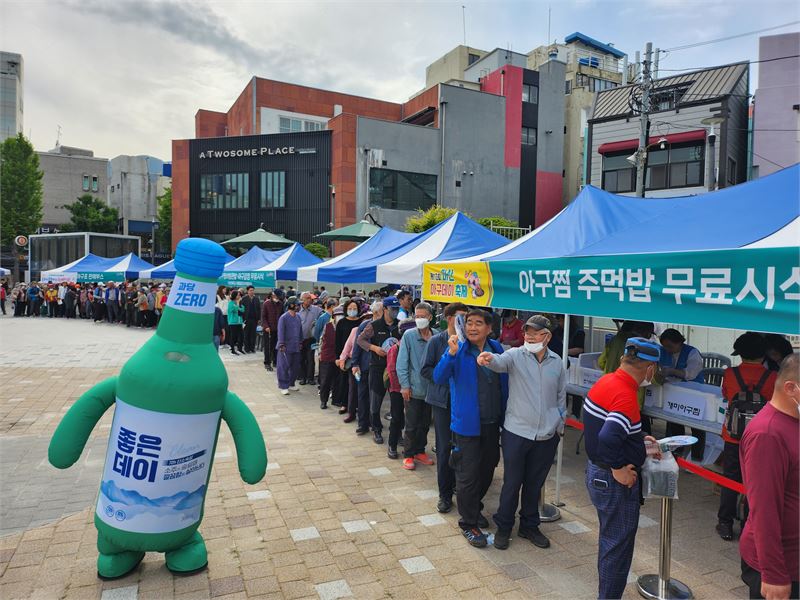 아구찜주먹밥 무료시식 코너에 줄이 길게 늘어섰다.