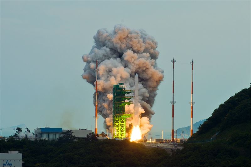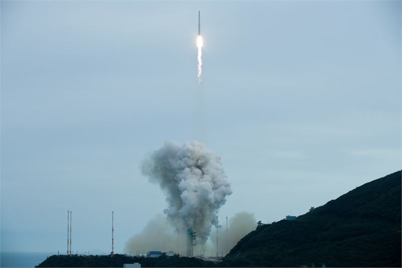 구름같은 자욱한 연기를 지상에 남긴채 하늘로 솟구쳐 저멀리 우주로 날아갑니다. 이상 과학기술정보통신부 제공