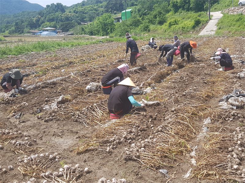 이날 군 노인아동여성과 직원 15여 명은 덕곡면 본곡리 소재 취약계층 노부부 마늘 농가를 방문해 마늘 캐기 및 줄기 자르기 작업 등을 하며 구슬땀을 흘렸다.