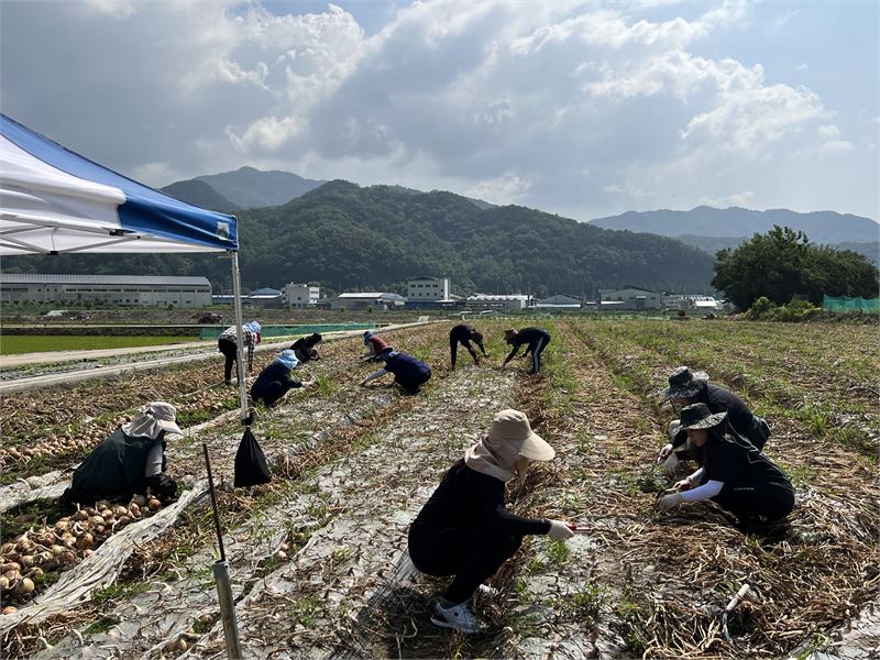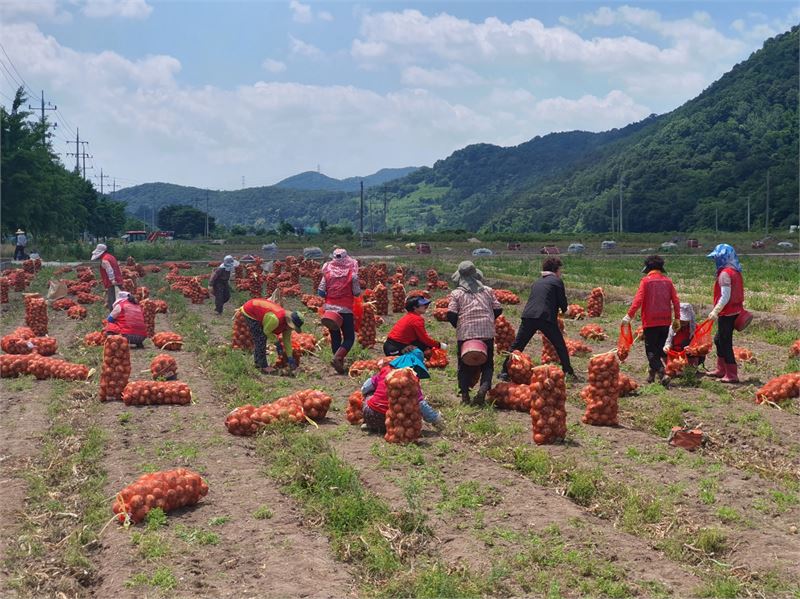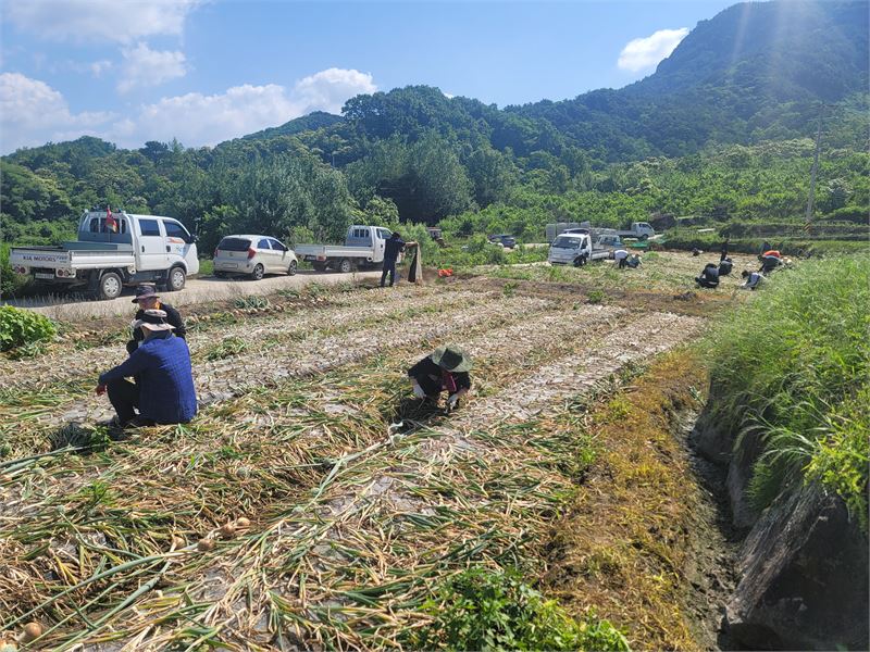 이들은 양파 수확철을 맞아 일손 부족으로 어려움을 겪고 있는 대병면 회양2구 양파 재배 농가에서 양파 수확을 도우며 구슬땀을 흘렸다.