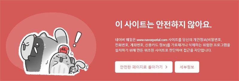 국정원은 “‘www.naverportal.com’ 등 정상 네이버 접속 도메인 주소(www.naver.com)가 아닌 경우 접속을 곧바로 중지할 것”을 당부했다. 만일 ID와 비밀번호를 넣고 로그인을 하면 개인정보가 털린다.