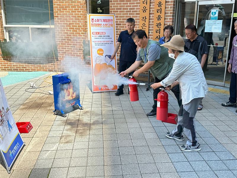 이날 체험형 안전보건교육은 임대주택 입주민이 소화기 사용을 직접 체험해 화재 발생 시 초기진화의 중요성을 알도록 하기 위해 마련됐다.