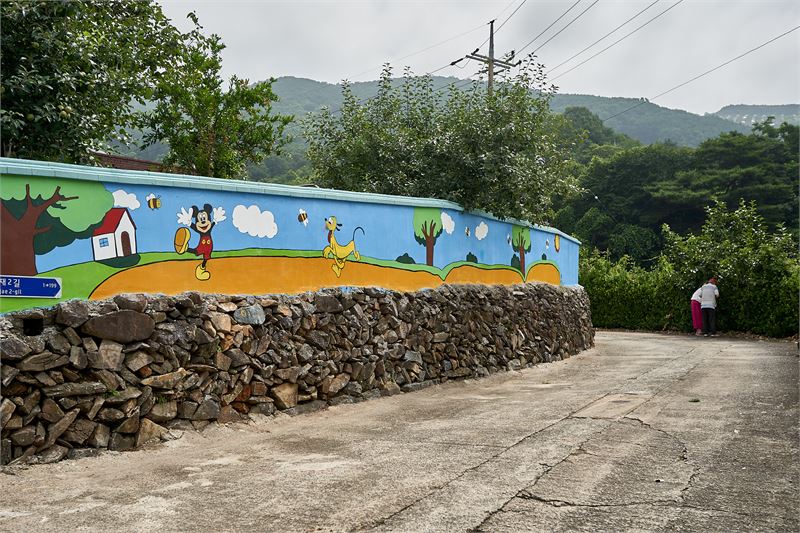 헐어져 있던 담을 정비해 벽화를 그려넣은 모습