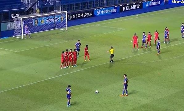일본의 프리킥 지점. 파울 지점보다 한참 앞이다.