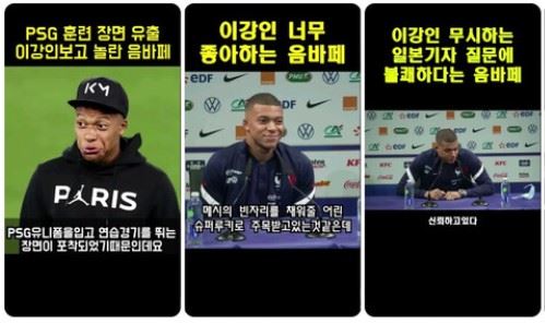 이는 이강인에 대한 이야기가 아니라 음바페의 소속팀 재계약 여부에 대한 질문과 답변이었는데 엉뚱한 자막을 교묘하게 단 것이다.